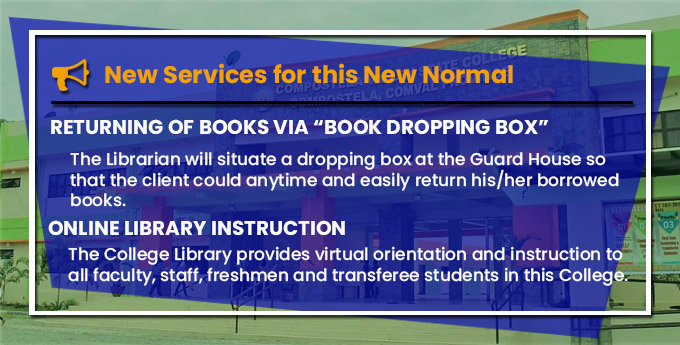 To accommodate the needs of the clienteles, the College Library offers the following services: